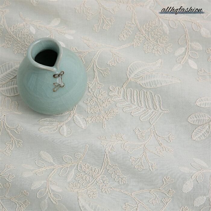 「10%OFFスーパーセール」生地 幅150cm 0.5m売り 手芸 布 綿 手作り 高級感 可愛い刺繍 花柄 葉柄 綿麻 コットン ファブリック 布地 繊細 バッグ ワンピース ベージュ