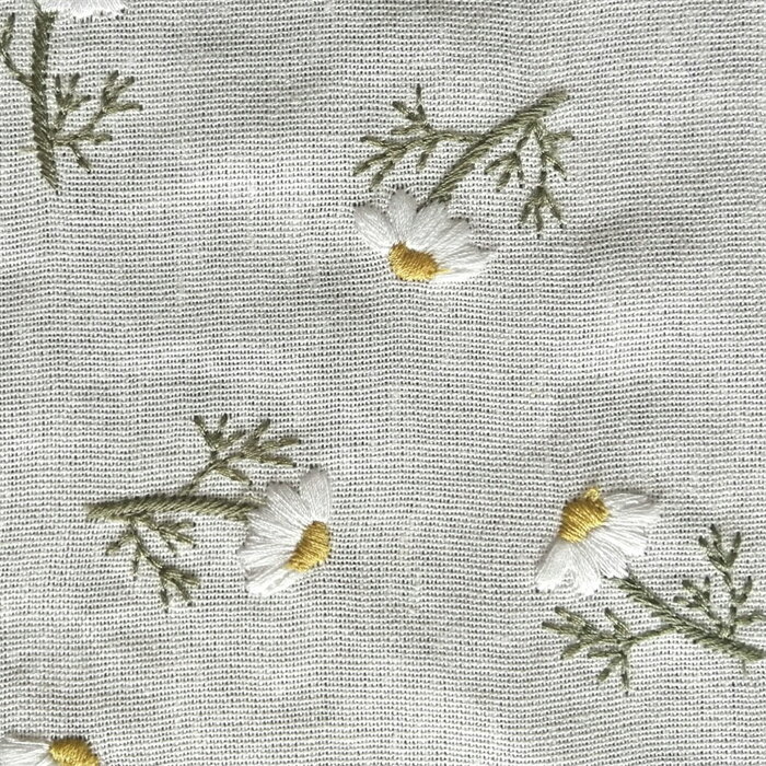 「10%OFFスーパーセール」生地 幅120cm 1m売り デージー 雛菊 ひなぎく すずらん 刺繍 手芸 布 綿 手作り 高級感 花柄 綿麻 コットン ファブリック 布地 繊細 バッグ ワンピース 白菊 黄菊 青菊 黒 白 灰