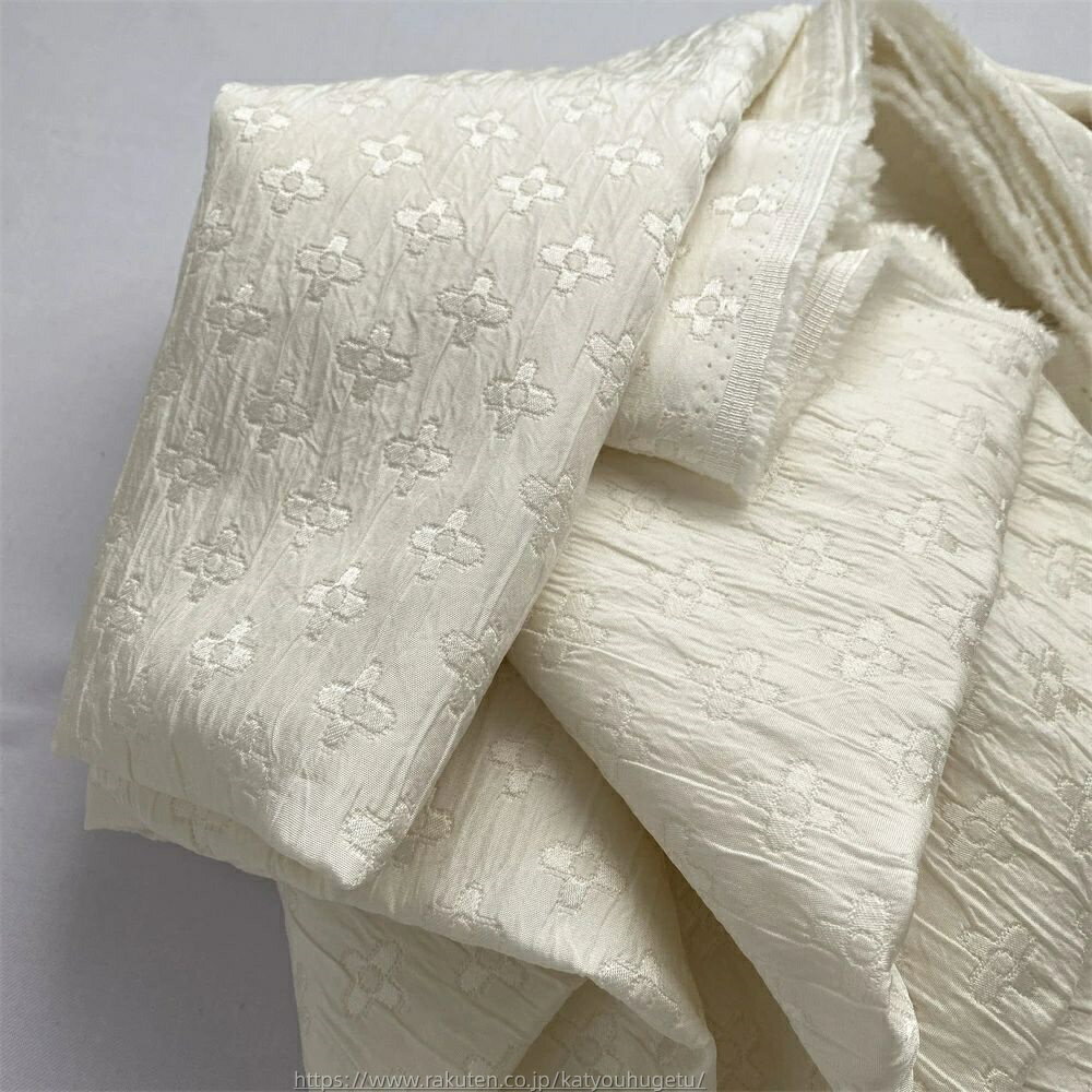 【時間限定10%OFFク一ポン】送料無料 135cm幅 90cm単位 生地 布 布地 きじ ぬの 手作り生地 裁縫 DIY用生地 手芸用 ハンドメイド向け ジャカード生地 色織り生地 綿布 コットン 綿生地 小花柄 ホワイト 純白 無地 しわ風合い 楽天海外通販