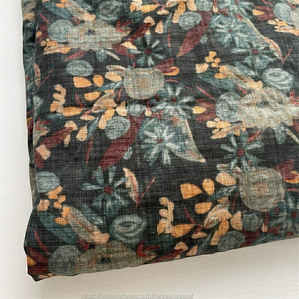 【時間限定10%OFFク一ポン】送料無料 135cm幅 90cm単位 生地 布 布地 きじ ぬの 手作り生地 裁縫 DIY用生地 手芸用 ハンドメイド向け プリント 花柄 森系 緑 黒 竹節綿 スラブコットン ダークトーン 濃色地 手描き風フラワー 楽天海外通販
