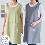 M〜3Lサイズ シャンブレー生地 ワンピース エプロン 無地 シャンブレー ゆったり 綿 コットン シンプル ロング ワンピースエプロン 保育士 ロング ギフト おしゃ