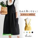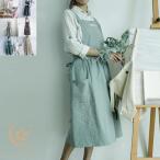 レディース エプロン コットン リネン 綿 麻 無地 ワンピース コットン 綿 無地 ラップ 巻きスカート 台所 レストラン カフェ 主婦 保育士 バイト バーベキュ