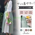 撥水エプロン ギャザーエプロン ワンピースエプロン カフェエプロン おしゃれ 無地 クッキング 前掛け 割烹着コットン シンプル ナチュラル 保育士母の日