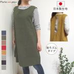 エプロン おしゃれ h型 薄手 綿 コットン 日本製 生地 レディース 無地 かぶるだけ ドレス 保育士 ゆったり かぶり ウエストゴム ナチュラル シンプル 21-1407