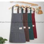 エプロン レディース ボーダー柄 キッチン ポケット付き シンプル 女性 メンズ 業務用 飲食店 前掛け 保育士 カフェ 衛生 清潔