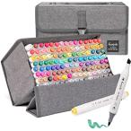 Ohuhu アートマーカー 水性ペン 100色 カラーペンセット 筆タイプ 水性マーカー 極細 手帳 絵手紙 イラスト 塗り絵 メモ 画材 美術 DIY 子供 大人 収納ケース付