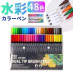 Ohuhu 水彩毛筆48色 水ペン2本 水彩ペン 筆ペン カラー セット 水彩筆 水性 水彩画 レタリング 透明 学習教材 画材 収納ケース付き