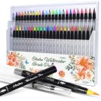Ohuhu 水彩毛筆48色 水ペン2本 水彩ペン 筆ペン カラー セット 水彩筆 水性 水彩画 レタリング 透明 学習教材 画材 収納ケース付き