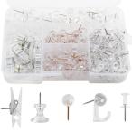 画鋲 押しピン 画鋲 画びょうフック 石膏ボード フック 装飾品釘 額縁 時計 壁掛け 透明 錆びない 収納ケース付き(200個入り)