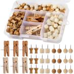20個の木製クリップ 30個の 画鋲、収納ケース付き 画びょうピン 固定用(ウッドカラー)