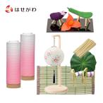 盆提灯 お盆 岐阜提灯 コードレス LED 白提灯 牛馬 ちりめん まこも ミニ 「初盆セット リビングセット 7-D ピンク」 はせがわ