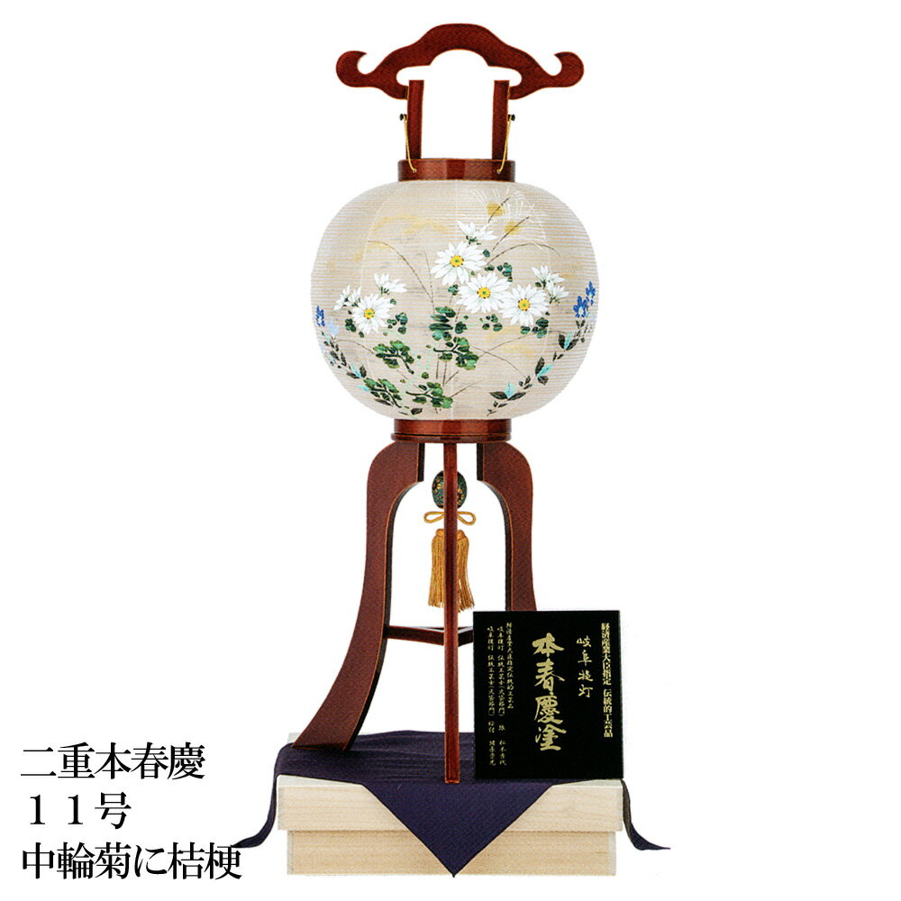 盆提灯 盆ちょうちん 大内行灯 お盆 新盆 初盆 御供 二重本春慶 11号 「中輪菊に桔梗」 絹張 二重 OZ-D496