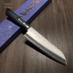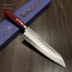 訓平作 三徳 包丁 170mm 刻流 槌目ダマスカス V金10号 赤合板柄 ギフト 越前打刃物 増谷刃物製作