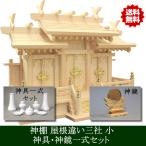 神棚 神具セット 神鏡付き 日本製 国産 三社 屋根違い三社 小 雲シール付 国産檜 木曽檜 檜 桧 ひのき 開業 事務所 新築 新年 引っ越し マンション お札入れ