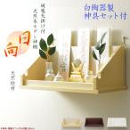 神棚【破魔矢掛け付き・シンプルモダン神棚:日向(ひなた)+御神鏡・増台・白陶器神具セット 天然木桧】 送料無料