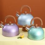 ケトルステンレス笛吹きやかん3L大容量木目ハンドル笛吹きケトル湯沸かしティーケトル簡単開閉コンパクトガス火/IH対応北欧広