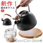 ケトル ステンレス 笛吹き やかん 3L 大容量 木目ハンドル 笛吹きケトル 湯沸かし ティーケトル 簡単開閉 コンパクト ガス火/IH対応 北欧 広口 オフィス