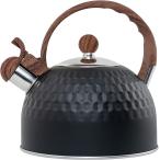 【並行輸入品】 笛吹き ステンレススチール ティーケトル 木目調アンチヒートハンドル 円筒形の木目ステンレススチールカバー 2.6クォート/2.5リッ