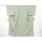 ys7313934; 宗sou 田尾笛秋作 蓑虫 鏡裏に花模様縦節紬訪問着【着】