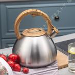 ケトルステンレス笛吹きやかん3L大容量木目ハンドル笛吹きケトル湯沸かしティーケトル簡単開閉コンパクトガス火/IH対応北欧広