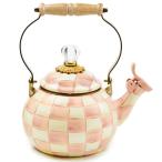 MACKENZIE-CHILDS エナメル笛吹きティーケトル装飾ティーポットピンクとホワイトのロージーチェック