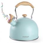 Yanhaoやかん 笛吹きケットル 2.5L 広口 ケトル ステンレス製 木目ハンドル 大容量 IH対応 やかん おしゃれ 調理器具 ライトグリ