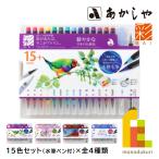 あかしや 水彩毛筆「彩」 15Color+ 各15色セット(水筆ペン付き)×4種類