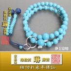 【逸品】◇宗派数珠 浄土宗男性用 三万浄土・圧縮トルコ石(ターコイズ)共仕立本銀輪付:正絹小田巻房 桐箱入