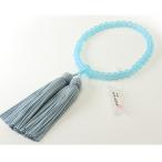 数珠 女性用 ブルークォーツ:正絹松風頭房 桐箱入