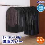 衣類カバー ブラック 22枚組(ショート16枚+ロング6枚) 抗菌防臭 洋服カバー 通気性の良い不織布 におい抑制 下部開き仕様 保管 カット可能 アストロ 605-24