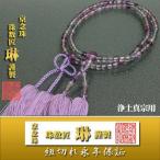 宗派数珠 本願寺女性用 門徒・紫蛍石(フローライト):正絹松風房 藤色 桐箱入