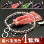 数珠 念珠 本水晶共仕立 8mm珠 正絹銀花カガリ房(色糸通し)(桐箱付)【略式数珠(女性用)/京念珠/銀花かがり房】f5205 f5206 f5207 f5208