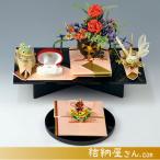 結納-略式結納品- 孔雀黒塗台セット(毛せん付)【高級黒塗台アレンジ・高砂人形・目録付】
