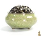 香炉 お香 線香 お香立て 陶器 アロマ 陶磁器 おしゃれ 蓋付き 香立付き 薄緑色( 香立付き 薄緑色)