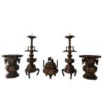 【五具足】現代仏具「ネーロ・ゴールド」【真鍮仏具】【日本製 】メーカー:現代仏壇おしゃれ ミニ仏壇 モダン 金属仏具 金属仏具 仏具セット きれい 花立 火立 ロウソク立 線香立 茶碗 湯のみ 八木研
