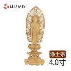 仏像 木彫 浄土宗 立弥陀 阿弥陀 柘植「仏像 浄土ツゲ 眼入上彫八角水煙金泥 40」お仏壇のはせがわ