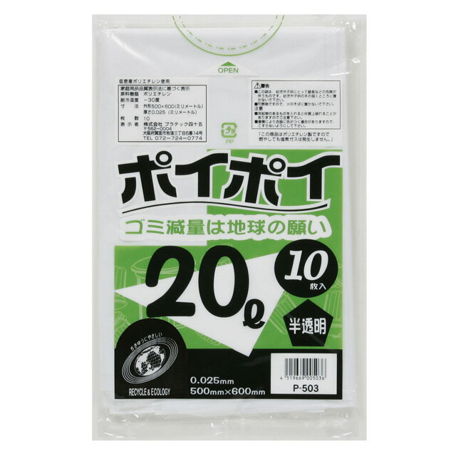 楽天 スーパーSALE期間 10%OFF 【個人様購入可能】●ポリ袋 ごみ袋 ビニール袋 20L (半透明) P-503 厚 0.025mm 10枚×100冊 送料無料 07142