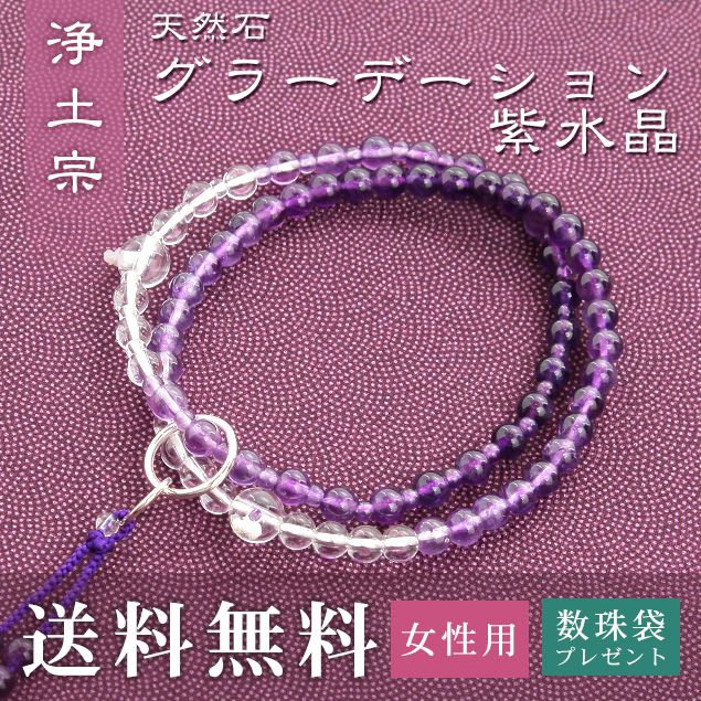 【楽天スーパーSALE限定50%OFF】 数珠 女性用 浄土宗 用 数珠 グラデーション紫水晶 (正絹華梵天房 紫) 送料無料 数珠袋 無料特典付 数珠 念珠 京念珠 じゅず ギフト 法事 葬式 葬儀 結納 .数珠.