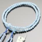 鑑別書付き 八宗派兼用 数珠 女性用 8寸 5A´ アクアマリン 銀花かがり房 数珠袋付き