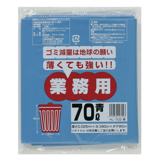 楽天 スーパーSALE期間 10%OFF 【個人様購入可能】●ポリ袋 ごみ袋 ビニール袋 70L (青) HL-702 厚 0.025mm 10枚×50冊 送料無料 07181