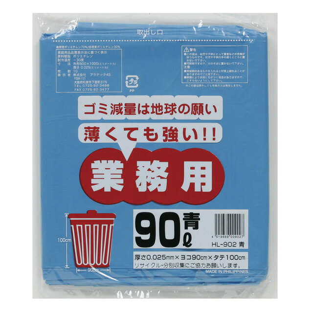 楽天 スーパーSALE期間 10%OFF 【個人様購入可能】●ポリ袋 ごみ袋 ビニール袋 90L (青) HL-902 厚 0.025mm 10枚×40冊 送料無料 07186