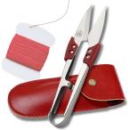 グリップ付で安全 よく切れる 糸切りバサミ 糸切りはさみ 糸きりばさみ 専用レザーケース付(レッドケース)