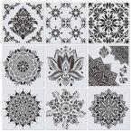 Rolin Roly 花柄 曼荼羅 9枚セット 30x30cmマンダラ 製図用 テンプレート DIYスクラップ ステンシルシ