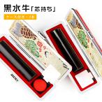 【送料無料】目印付き 柘 黒水牛 チタン認印+訂正印2本セット 印鑑・はんこ/訂正印/認印 女性 男性 ハンコ 実印 認印 銀行印 訂正印 印鑑 就職祝い プレゼント 【 認印10.5-12.0mm+ 訂正印 6mm丸形/6×5mm小判型 2本入る印鑑ケース付き】ネコポス