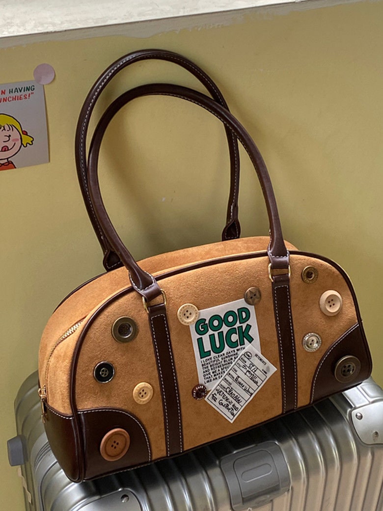 2024 新しいレトロなアメリカの幸運の木の金属ボタンの手持ち型の質感の鹿革の脇袋