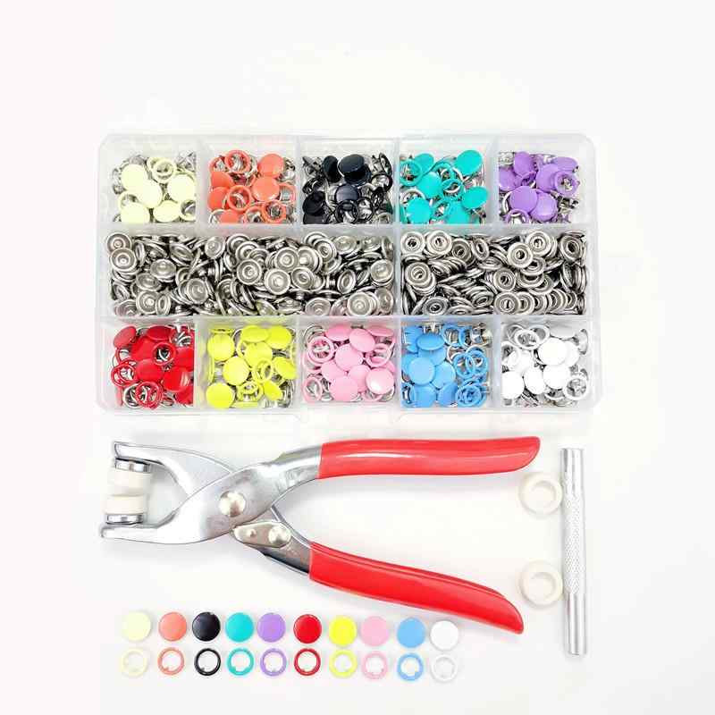 スナップファスナーキット 140セット リベットボタンプレススタッド衣類用ラピッドリベットボタンジーンズ真ちゅう製 金属ボタン取り付けツール付きスナップファスナーキットパンチプライヤー12.5mm