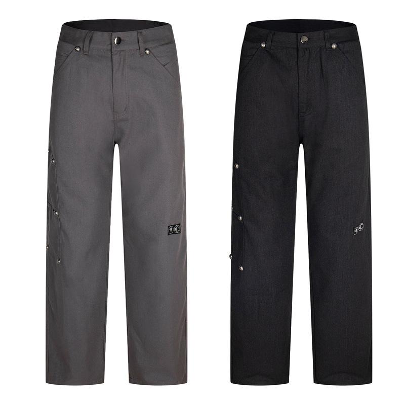 パンツ 男性用 ストリート 金属ボタン 飾り付き ワークパンツ ルーズフィット ストレート ゆったり 無地 コットン混紡