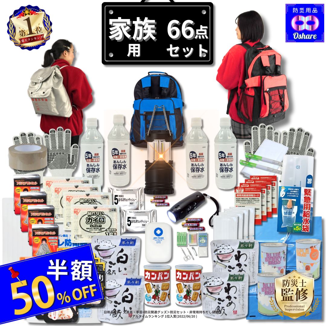 \50%OFF!/ 防災セット 家族用 サバイバル 66点 家族 の命を守る 防災グッズ 防災【 防災リュック 防災バッグ 災害グッズ 1人用 1人 3人用 3人 家族用 家族 女性用 子供用 中身だけ 災害 保存食 非常食 ランキング 1位 防災用品 オシャレ 】