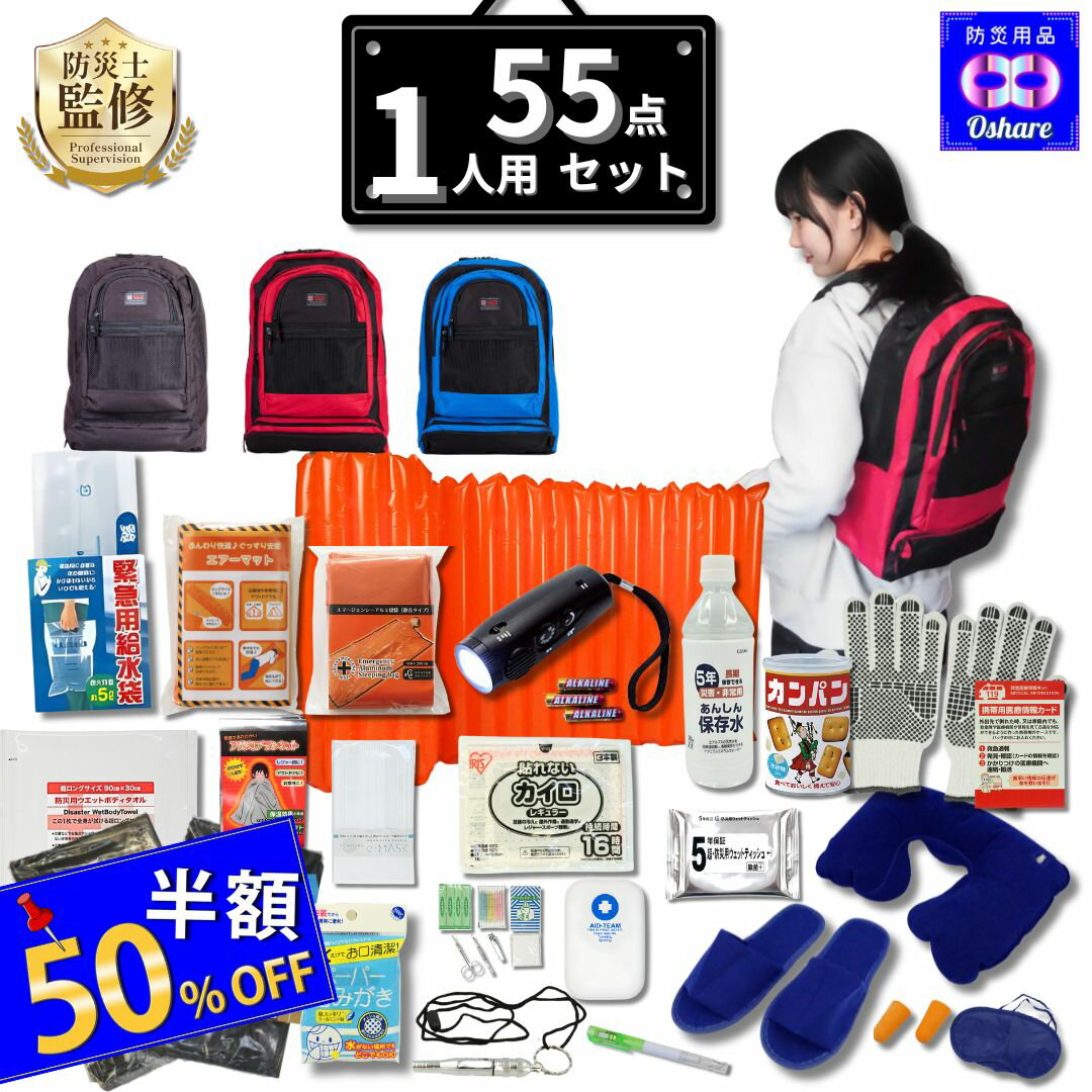 \50%OFF!/ 防災セット 1人用 サバイブワン 55点 1人 防災 防災グッズ 防災リュック は選べる3色 赤 青 黒【 防災バッグ 災害グッズ 1人 2人用 3人 家族用 家族 女性用 子供用 中身だけ 災害 ランキング 1位 防災用品 オシャレ 】