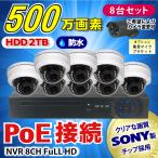 防犯カメラ 500万画素 8CH POE レコーダー SONY製 防水 ドーム型 IPカメラ 8台 セット 音声録音 HDD 2TB LAN接続 高画質 監視カメラ 赤外線 夜間撮影